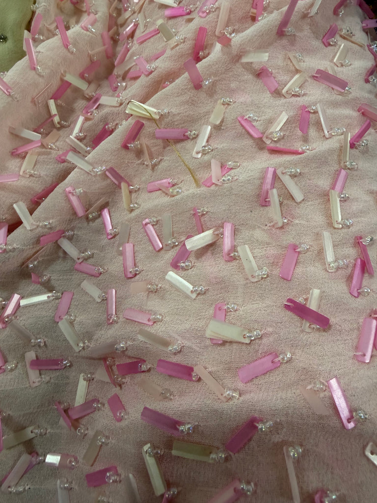 Floral Pattern with Seashells Silk Chiffon Embroidery